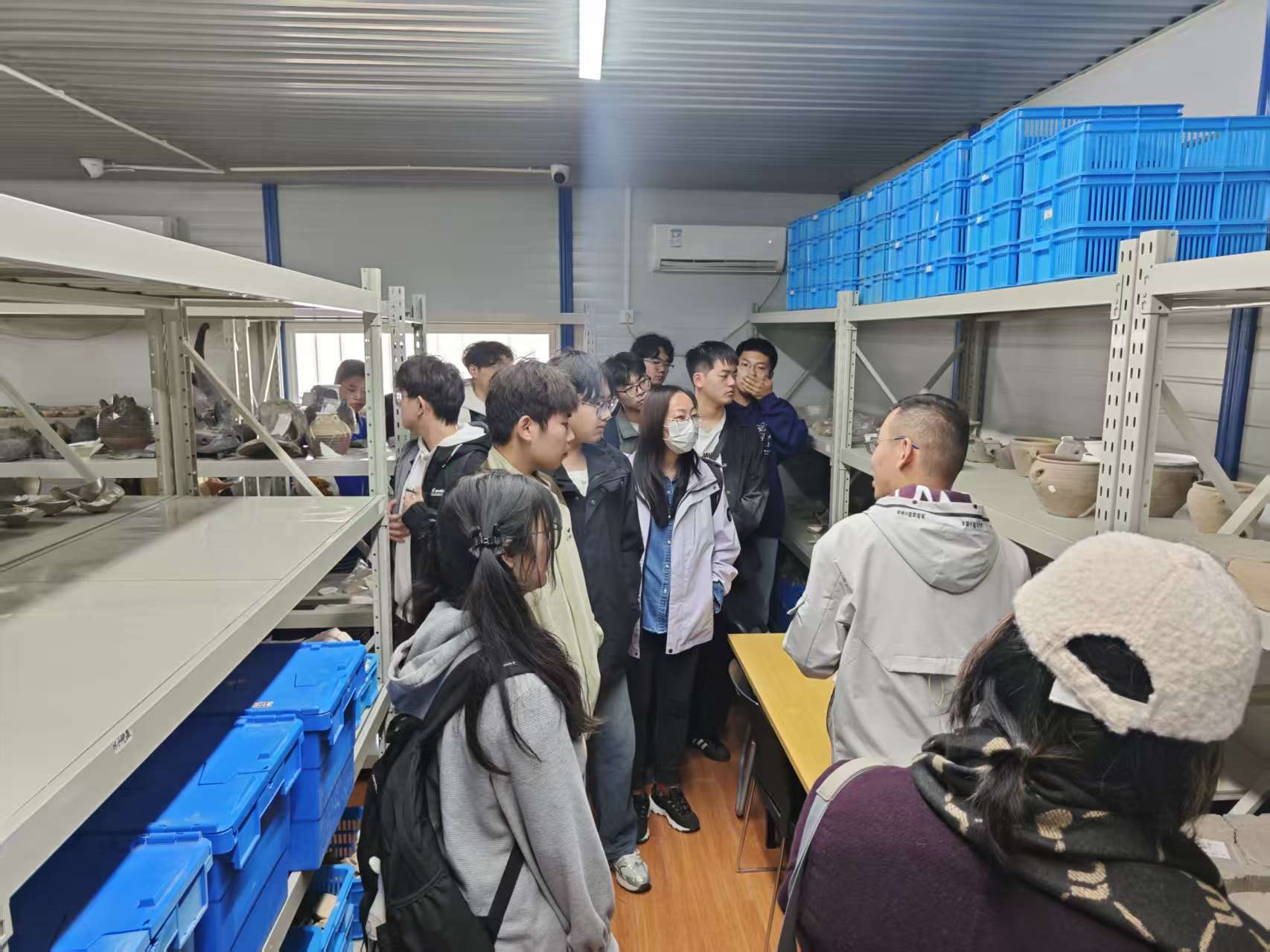 南京市考古研究院的王伯强老师首先带领党员一行参观了2023年至今仍在持续发掘的南京“六朝国门”遗址。在现场,我支部王一丁、孙璨老师对遗址的发掘情况与王老师进行了深入探讨,并从专业角度对遗址有可能的建筑形制向员工们进行了讲解与说明。其后又对西街这条南京历史上的重要道路考古遗迹进行了考察。最后,还有幸进入西街遗址的文物库房区,对出土的西周至宋代文物进行参观学习,了解了六朝时期的青瓷器、香薰炉、虎子、瓦当的制作工艺,圆满完成了此次党日活动。