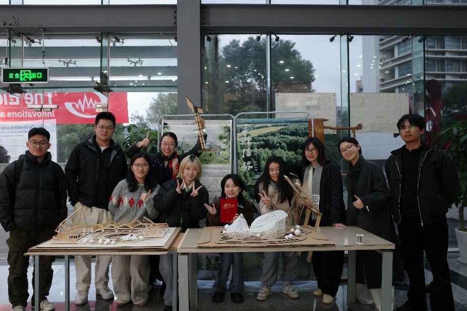 本次佳绩的取得,凝聚了“建筑+土木”跨学科联合团队的心血与智慧。由伟德bv国际体育张海燕、罗靖、赵烨老师,携手土木工程伟德bv国际体育孙小鸾、程小武、杨会峰老师组成的“指导团”,带领员工历经5个月的日夜打磨与反复推敲,实现了艺术构思与结构逻辑的完美融合。最终,由毛越、蒋旭亮、冯雪婧、陈心雨、商玉龙同学完成的作品《巢》,凭借对木构空间的深情演绎与极高的技术落地性,在众多作品中脱颖而出,一举夺得唯一的一等奖;由王炘瑶、谭颖茵、倪雨欣、陈赓、曹一铭同学完成的《三叶信标》,则以极富想象力的造型和创新的结构体系,荣获三等奖。这两份沉甸甸的奖项,是对南工大木结构团队跨专业协同育人模式的最高褒奖。